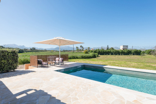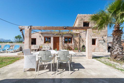 This unique property sits on a 18,000 sqm flat plot just 2 km from the beach and 4 km from Port of Alcudia. It offers full privacy and stunning views of the Tramuntana mountains.