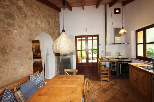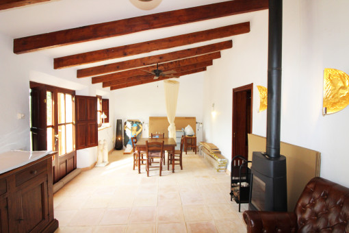 This charming finca is easily accessible and surrounded by beautiful nature in the middle of a Mediterranean garden with olive and fruit trees. The main house consists of 2 bedrooms, 2 bathrooms, open kitchen and living room with fireplace. The guest house has a living room/bedroom with fireplace and bathroom. Furthermore, there is a studio, which also consists of a living room/bedroom with fireplace and bathroom.