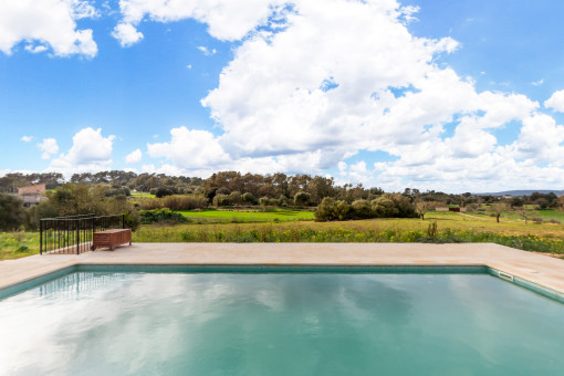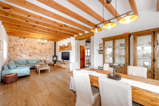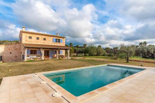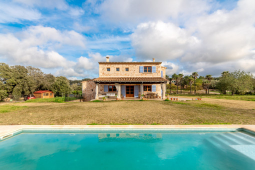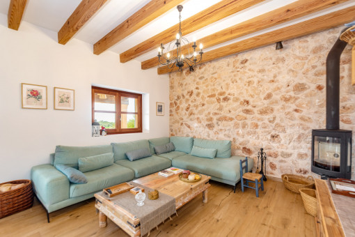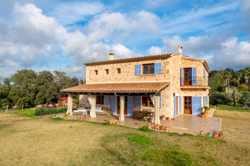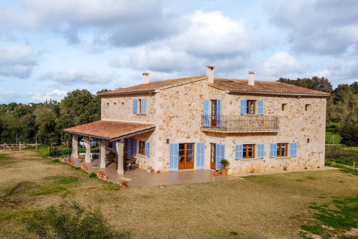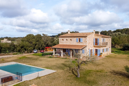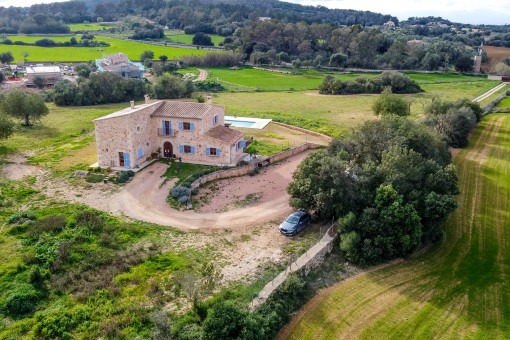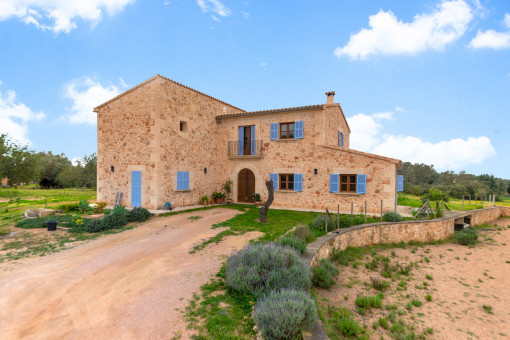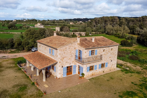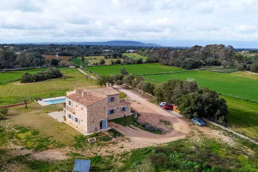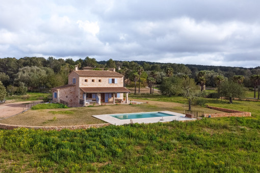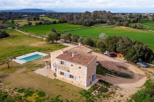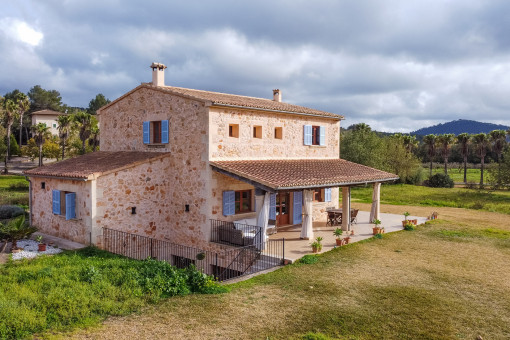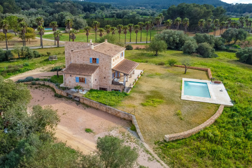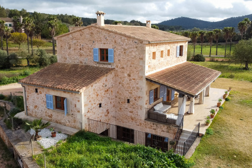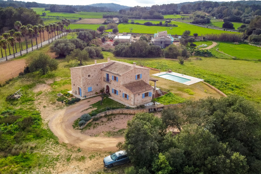 This dreamlike natural stone finca was built in 2017 and is located very close to the idyllic village of Algaida, on a plot of 15,191 sqm and beautiful views as far as the Tramuntana mountains.