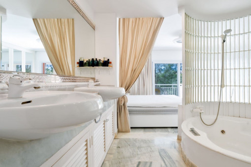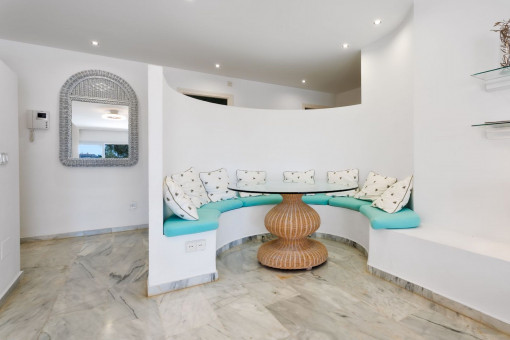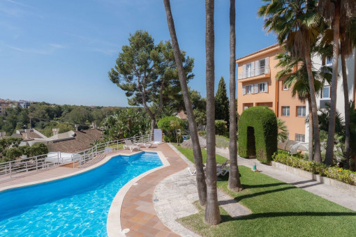 Located in one of the most sought-after residential areas in the southwest of Mallorca, just a few minutes from Palma, this spacious duplex apartment in Bendinat offers a perfect combination of comfort, privacy, and proximity to the sea. The well-kept residential complex is quietly situated on a hillside, right next to the prestigious Real Golf de Bendinat and close to Illetas beach with its many restaurants and cafés.