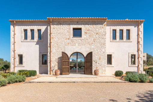 This dreamlike finca nestles in the middle of the Mediterranean countryside on a plot of approx. 14,330 sqm with wonderful sea views. The finca was built in 2022 using the highest quality materials. Traditional Mallorcan natural stone, attractive metal elements and modern design characterize this dream finca. The location of the finca is sensational. You can reach turquoise-blue bays, restaurants and shops in just a few minutes.