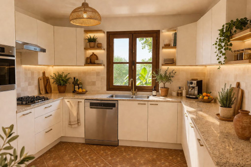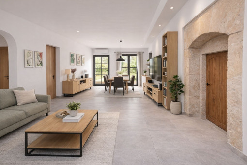 The property also combines charm and history: the oldest part of the house is a natural stone building dating back to 1916, featuring thick stone walls and an open fireplace that adds authentic Mallorcan character.