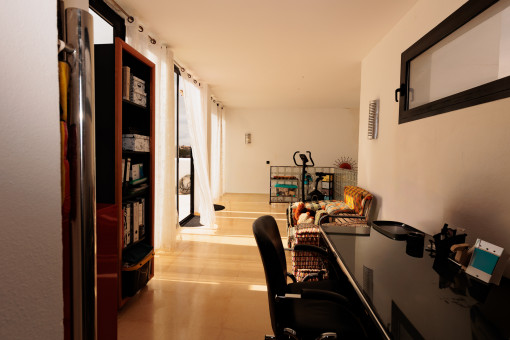 On the upper floor there is a spacious hallway that can ideally be used as a home office or workspace – perfect for remote work or as a quiet reading area. Underfloor heating powered by an oil heating system provides pleasant warmth during the cooler months, while hot water is supplied in an environmentally friendly way via a solar thermal system.