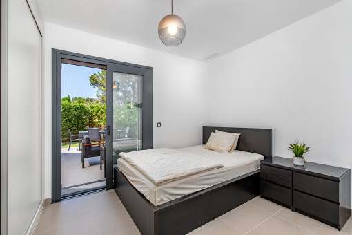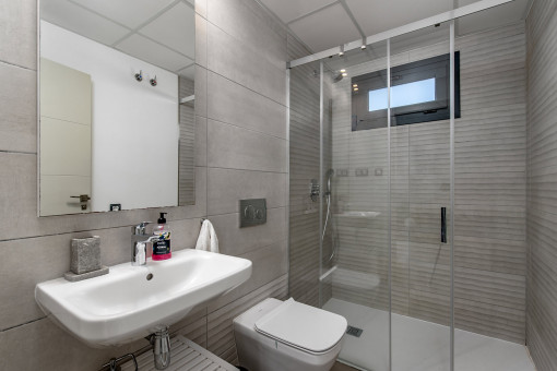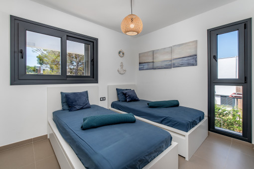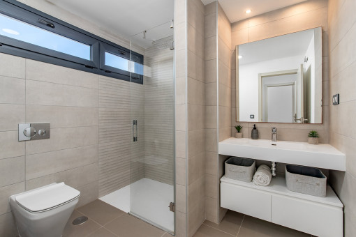 On the upper floor, which is reached via a staircase, there are 2 further bedrooms, each with an en suite bathroom. The master bedroom also has access to a sunny balcony that leaves nothing to be desired.