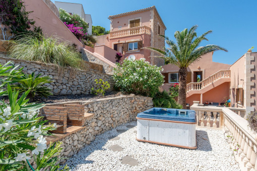 The garden is laid out in terraces, planted with Mediterranean species and designed to require little maintenance. Stone walls, a barbecue area, a covered whirlpool and several sheltered outdoor seating areas make this the ideal spot to enjoy outdoor living to the fullest.