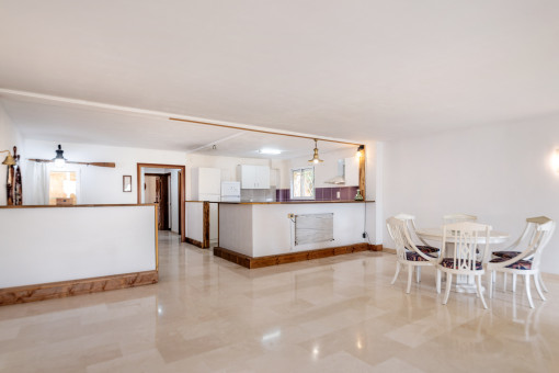 The apartment is a duplex consisting of a ground floor of 140 sqm and second floor of 160 sqm, through which you enter the house. Part of the duplex was renovated four years ago and this includes bathrooms, enclosures or plumbing. The kitchen would need to be updated.