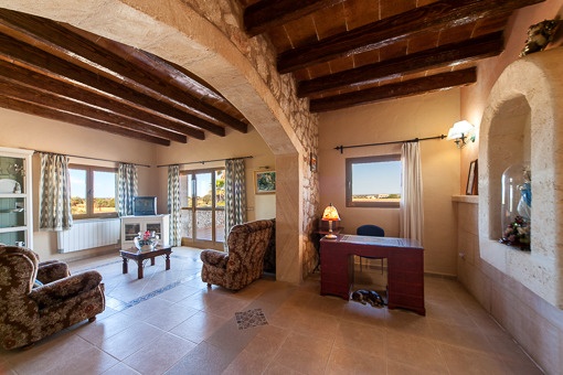 This country house covered with natural stone is situated in a very calm area on the outskirts of Campos. This country house with a constructed area of 811 sqm is set on a 14,000-sqm plot, which is completely enclosed by stone walls.