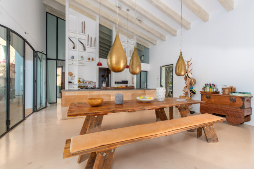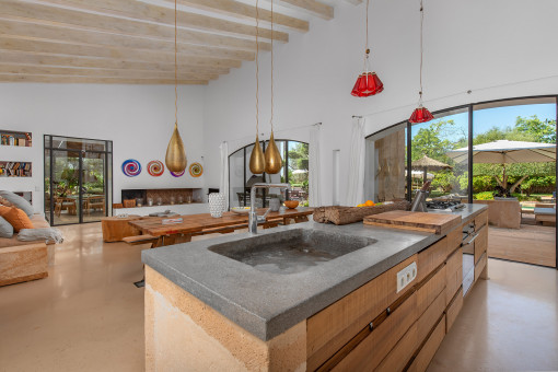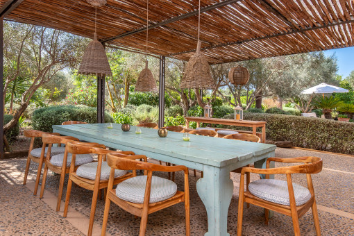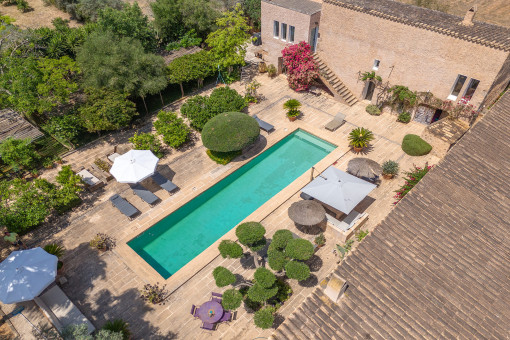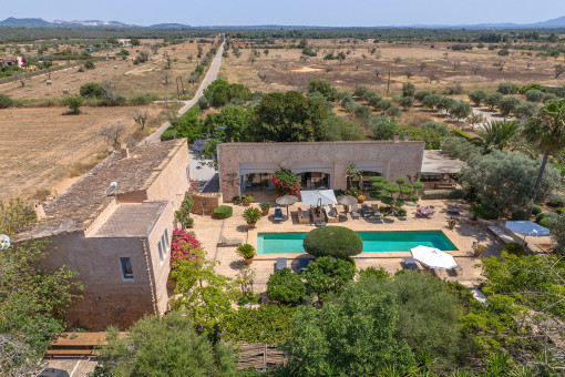 This exceptional finca property near Campos impresses with its peaceful location, its authentic character and a successful combination of traditional architecture and contemporary living comfort. Nestled in the gentle Mallorcan countryside, a hidden hideaway with sweeping views, great attention to detail and unique flair awaits you here. The spacious plot guarantees absolute privacy and delights with a lush, Mediterranean garden - a place that invites you to slow down as well as enjoy active moments. Ideal for private use, as a vacation home or for special occasions such as yoga retreats.