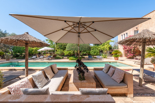 The outdoor area is like a private leisure oasis: a large pool, tennis court, boules court and volleyball court offer numerous opportunities for sporting activities. Various terraces - sometimes sunny, sometimes shady under old trees - create atmospheric retreats for rest and relaxation.