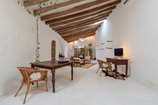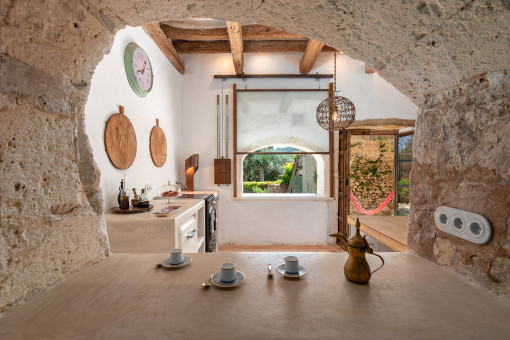 This finca is more than just a house - it is a piece of Mallorcan soul: a palimpsest of layers of history once hidden in its walls, and now revealed through a unique renovation process undertaken by two New York-based artists. With its ancient stone walls, lovingly preserved details and the venerable olive press from the 15th century, it tells stories from times long past. Sixteen rooms, including six bedrooms, a studio for art or music, a study, three living rooms and an underground bodega, form a home with infinite facets.