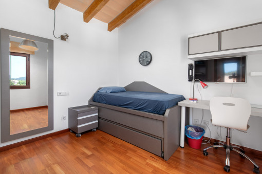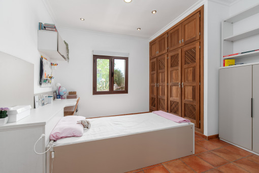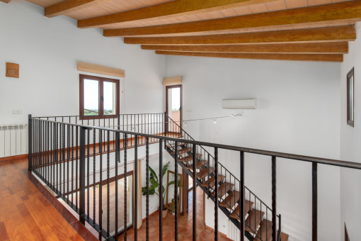 The upper floor houses a further bedroom, a small office and a large terrace with spectacular views, even as far as the island of Cabrera on clear days.