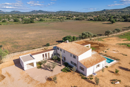 This stylish new-build finca is located in the gently rolling hills of Cas Concos on a plot of around 21,900 sqm. Surrounded by unspoiled nature and with impressive panoramic views as far as the mountains, the property combines modern architecture with the authentic charm of Mallorca. A place where tranquillity, privacy and the Mediterranean lifestyle come together in perfect harmony.