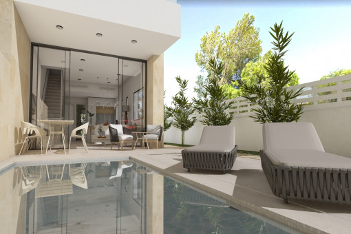 This exclusive new-build semi-detached house is being built on a plot of approx. 282 sqm in a sought-after location in Colonia Sant Jordi. The quiet location makes this property an ideal retreat, while at the same time you can enjoy the proximity to local amenities and fantastic beaches.