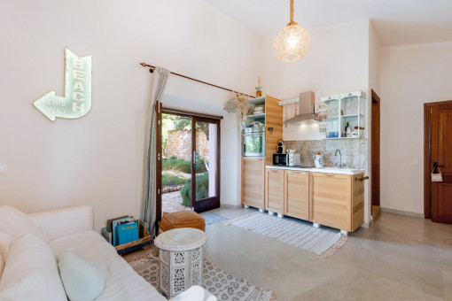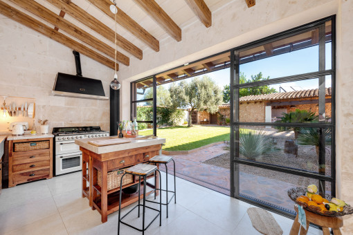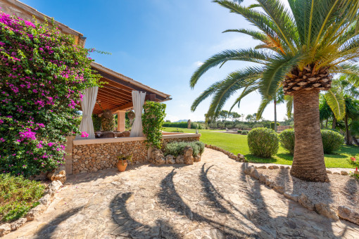 Outside, the Mediterranean lifestyle unfolds to perfection: a large saltwater pool with a 71 sqm sun terrace, an Andalusian patio with BBQ lounge, pavilions in old iron, flowering gardens with palm trees, fruit trees and fragrant plants. These are places for conversations, tranquillity and celebrations - always with a feeling of privacy and freedom.