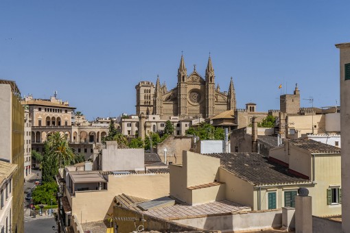 Som det anstår medeltiden, staden och kyrkan gick hand i hand, mittemot kungens fästning var den kyrkliga pärlan, Catedral La Seu (skeppet byggt 1230-1587, den viktigaste portalen invigdes 1601). Denna kyrka har inte bara fått en särskild utmärkelse för sin arkitektoniska briljans, utan också på grund av det topografiska läget. Domkyrkan ligger på den höga terrassen över havet, som vid denna tidpunkt inte hade en förhöjd Paseo Maritimo, som då var den enda domkyrkan vars bild återspeglades i Medelhavet. Idag kan du beundra återspegling av den södra fasaden i den konstgjorda sjön Parc de la Mar.