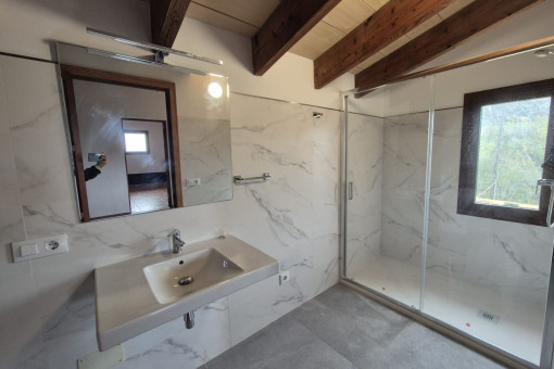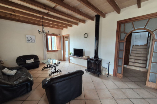 The cozy, typical Mallorcan kitchen impresses with its Mallorcan character and has an open fireplace for barbecuing. The spacious living area with a fireplace invites you to spend cozy hours on cooler days. In addition, gas central heating provides pleasant warmth throughout the house, while some rooms are also equipped with air conditioning (hot/cold).
