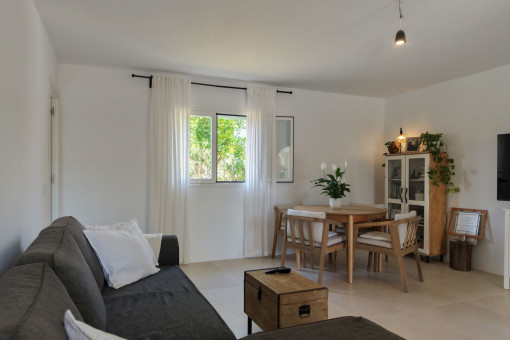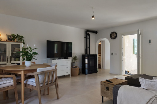 This charming finca is situated in a quiet and idyllic area just a few minutes from Llucmajor. Set on a plot of approximately 1,862 m², the property offers around 105 m² of living space, combining traditional Mallorcan character with modern comfort and energy efficiency.