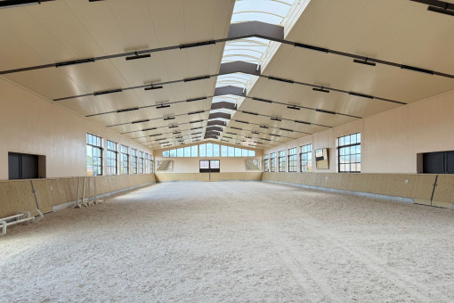 The spacious indoor riding arena (60 x 20 m) has a front building with approx. 800 sqm on 2 floors and offers a wide range of uses - also for other animal husbandry.
