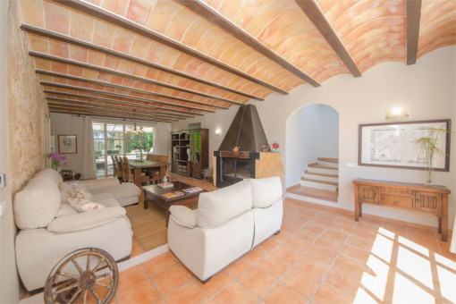 With a total constructed area of approx. 450 m², the property combines generosity and character. The main house with around 250 m² of living space radiates warmth and authenticity and combines Mallorcan tradition with contemporary comfort. The centerpiece is the light-flooded living area with fireplace - a space for long evenings, conversations and a feeling of security. A separate dining room, a fully equipped kitchen and 4 spacious double bedrooms invite you to arrive and linger. One of the bedrooms has a dressing room and 3 stylish bathrooms provide a high level of comfort. An additional studio on the first floor offers flexible usage options, for example as a further bedroom or creative retreat.