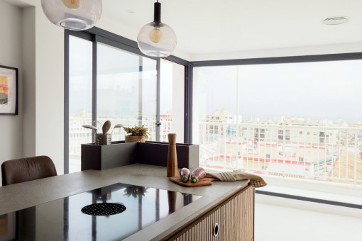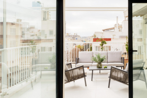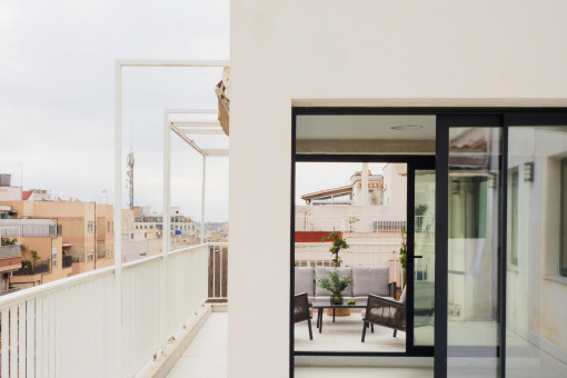 A true highlight are the 2 expansive terraces totaling approximately 50 sqm. Here you can enjoy the sun from morning till evening, take in views over the city all the way to the impressive Tramuntana mountains, and extend your living space outdoors – perfect for relaxing, enjoying, or entertaining friends and family.