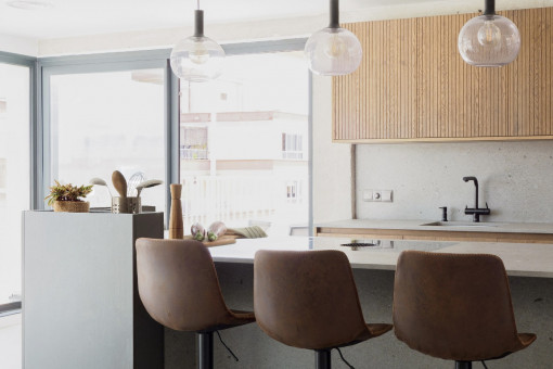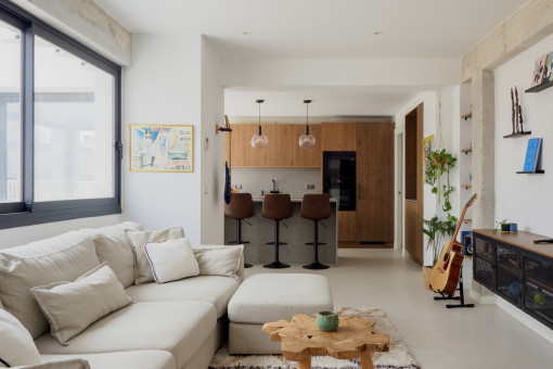 Welcome to this modern penthouse in the popular Bons Aires district of Palma – quietly situated yet right in the heart of the action. Numerous shops, charming restaurants, and the train station are all within easy walking distance. This location offers the perfect balance between urban living and relaxed comfort.