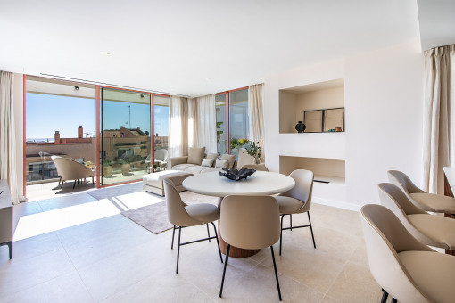 This exceptional penthouse is situated less than 5 minutes by foot from the beach and approx. 15 minutes walk from the centre of Palma. Its privileged location offers views of the cathedral, a large, green park, the Tramuntana mountains and, of course, of the sea.