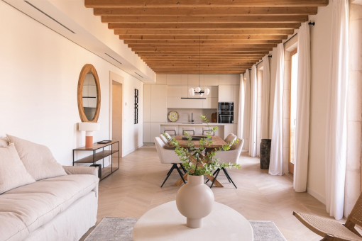 This freshly renovated apartment is located in an absolutely prime location in the historic center of Palma, just a stone's throw away from the historic Plaça de Cort, one of the city's most significant landmarks and vibrant meeting points.