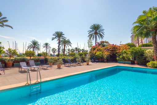 The Paseo Marítimo forms the borderline from the capital Palma towards the water and extends on about 6 kilometres from the military port of Porto Pi in the west, along the historic centre, the antique pier, the cathedral till the fisher harbour of Portixol in the east. Whilst some people take the bicycle or the roller blades, others are jogging or simply walk; all of them are enjoying meanwhile the fresh breeze on the waterfront. The promenade of Palma is one of the favoured meeting points for the people of the island and the life not only vibrates during the day. The attractive nightlife offers different kind of hip dancing clubs, fancy pubs, coffee shops and restaurants for each taste. Sunny residential apartment blocks, south orientated, with views to the marinas with its floating yachts, define the image of the Paseo Marítimo.