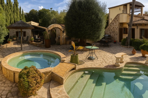 A special highlight of this property is the heated pool with an area of around 60 m² and integrated jacuzzi area. There is a further bathroom next to the pool.