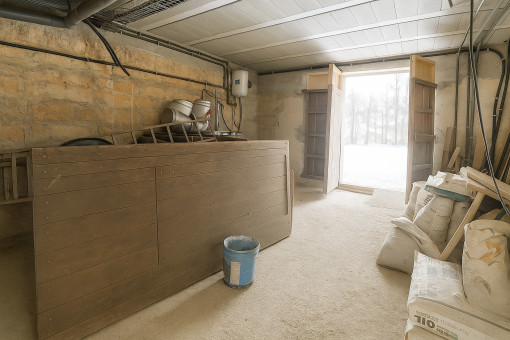 Another highlight is the small outbuilding on the edge of the plot, which is already equipped with electricity and water connections and offers potential for expansion.