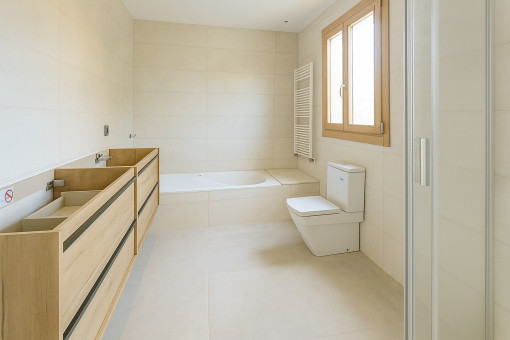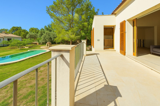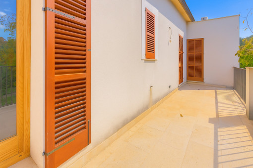 The 2-storey main house impresses with its modernized upper floor - the actual living level. Here there are 3 spacious double bedrooms, all with fitted wardrobes and direct access to the terrace, as well as 3 bathrooms, two of which are en suite.
