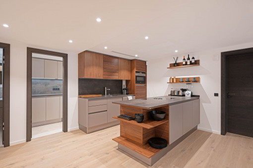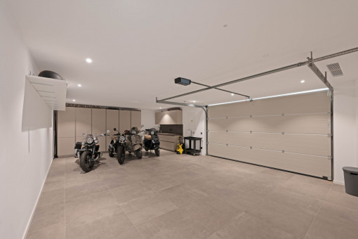 Premium materials: natural stone, brushed oak parquet, walnut kitchens with ceramic countertops, Siemens appliances, Duravit bathrooms with Steinberg fittings. The home is furnished with designer pieces (Rolf Benz, Hülsta, Cattelan Italia), features designer lighting throughout, and a Mediterranean garden with automatic irrigation and LED lighting. Fully accessible, southwest-facing, and just steps from the yacht club and harbor promenade.