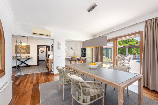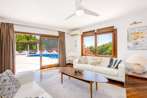 Located in a quiet residential area of Marratxí, just minutes from Palma, this exclusive Ibiza-style villa sits on a 1,276 sqm double plot and offers breathtaking views of the Bay of Palma and the sea. The property combines Mediterranean design, modern amenities, and a well-thought-out layout—ideal for families, couples, or as a stylish second residence.