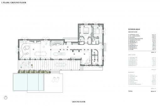 The lowest level consists of a large garage with space for 4 vehicles, the technology room, a laundry room, a storage room, a separate WC, and an exclusive home-cinema room.