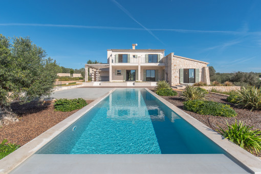 This exclusive new-built finca property is situated in a quiet location near Santanyí and offers sweeping views over the picturesque landscape. The property was completed in 2024 with great attention to detail - using high-quality materials and state-of-the-art technology.