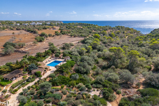 The natural preserve of Mondragó is nearby offering numerous routes for hikers, whereas the idyllic bays at the east coast, as Cala Santanyí or Cala Llombarts are perfect for bathing. The harbour of Portocolom and the golf course of Vall d’Or are at a short distance.