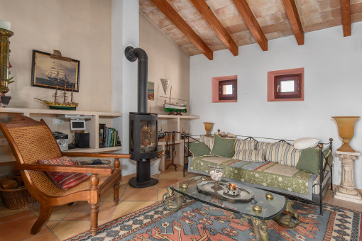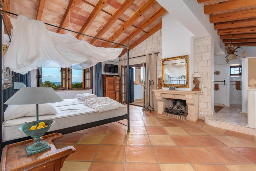 On the upper floor there is an inviting gallery with a cozy stove. A perfect retreat. The master bedroom boasts a fireplace, en suite bathroom and a private terrace with stunning sea views. Another bedroom is separately accessible and has its own small living area with kitchenette and bathroom. Ideal for use as a guest area or independent apartment.