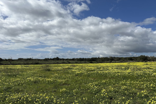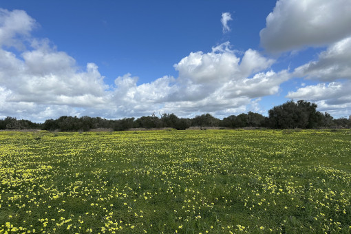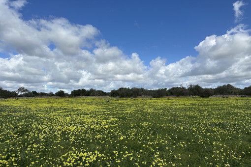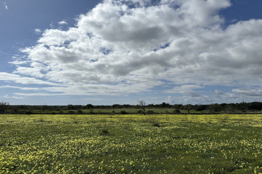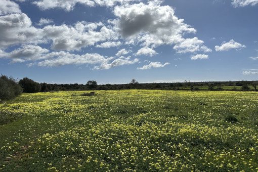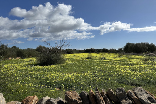 A plot of land for sale in the immediate vicinity of Santanyí. It has an area of 18,121 sqm and an approved building project for the construction of a finca on one level, the center of which is formed by a spacious and open living and dining area as well as the kitchen. In the two wings to the side and slightly in front there are a total of 4 bedrooms and 4 bathrooms (all en suite).